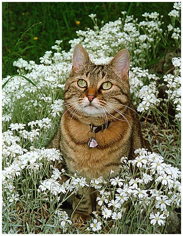 Beanie dans son jardin dans les Alpes (mai 1997)